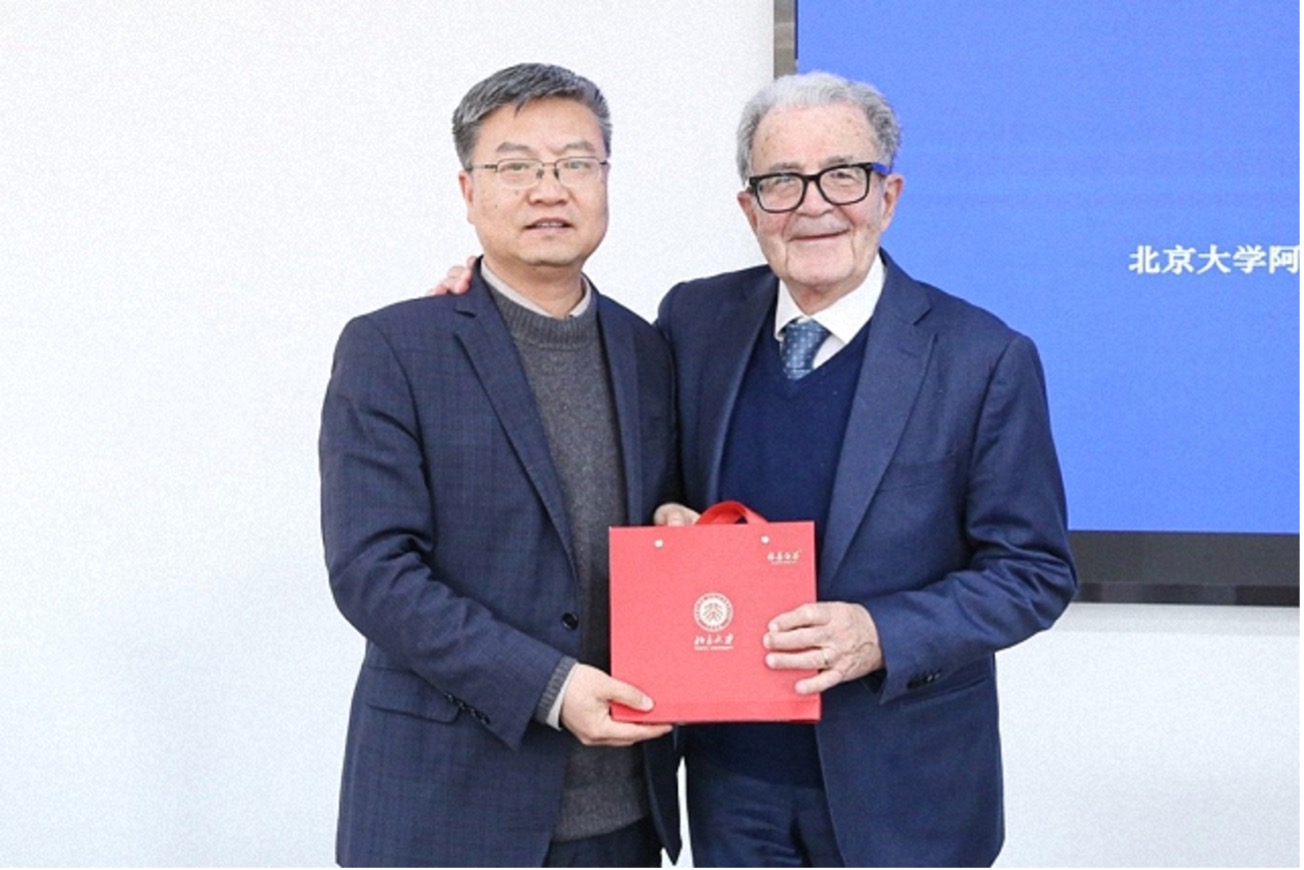 On February 26, 2025, Romano Prodi, former Prime Minister of Italy and former President of the European Commission, visited the School of International Studies at Peking University. Dean Tang Shiping received the delegation in Room A101 of the school. Associate Deans Zhang Haibin and Dong Zhaohua, Assistant Professor Lu Xiao, and Director of the Research Office Wang Yumeng also attended the meeting. The delegation was accompanied by Professor Daniele de Giovanni from the University of Bologna and Wang Qinghong, Executive Director of the China-Europe Philanthropy Innovation Center at Peking University.