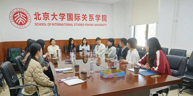 On the morning of October 28, 2024, a delegation of four faculty members and students from the “CAMPUS Asia” program of the School of International Relations and Public Affairs, Fudan University (SIRPA) visited the School of International Studies, Peking University (SIS, PKU). The delegation was led by Li Yin (Associate Professor, Executive Director of the CAMPUS Asia Program, SIRPA) and Zheng Han (International Office, SIRPA). They held a roundtable meeting with faculty members and students of the CAMPUS Asia program at SIS. Participants from SIS included Dong Zhaohua (Associate Professor, Associate Dean, SIS), Chen Fang (Deputy Director, International Programs Office, SIS), Xu Jiaqi (International Programs Office, SIS), as well as students of the CAMPUS Asia program.
