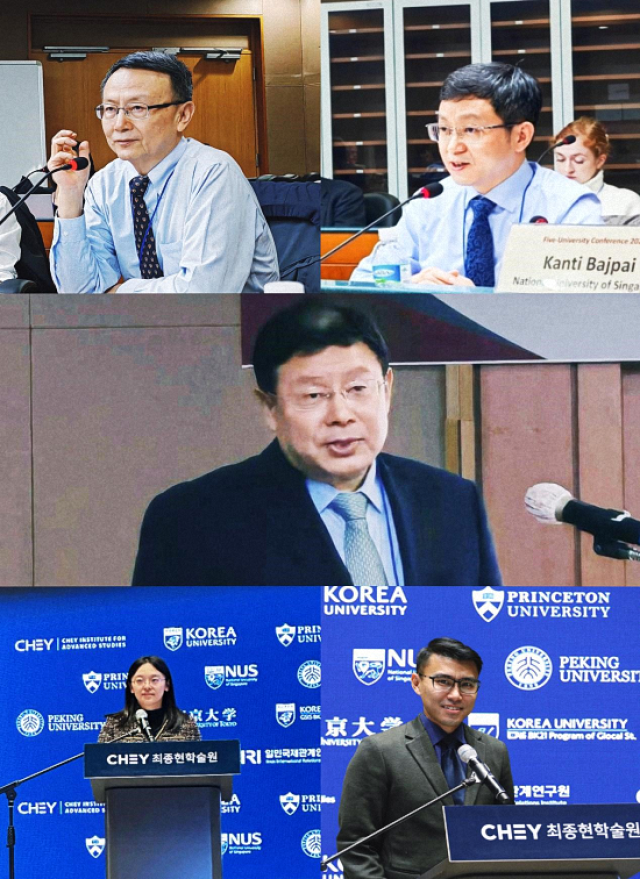 On December 15-16, 2023, Korea University hosted the 15th Five-University Conference at its main campus and the Choi Jonghyun Academy. Peking University’s School of International Studies (SIS) was represented by Professors Jia Qingguo and Zhang Qingmin, Associate Professors Gui Yongtao and Dong Zhaohua, and Assistant Professor Qi Haotian. Doctoral candidates Zhu Lingling and Li Sining participated in the graduate student forum. The conference brought together nearly 30 distinguished IR scholars from Peking University, Princeton University, the University of Tokyo, Korea University, and the National University of Singapore.