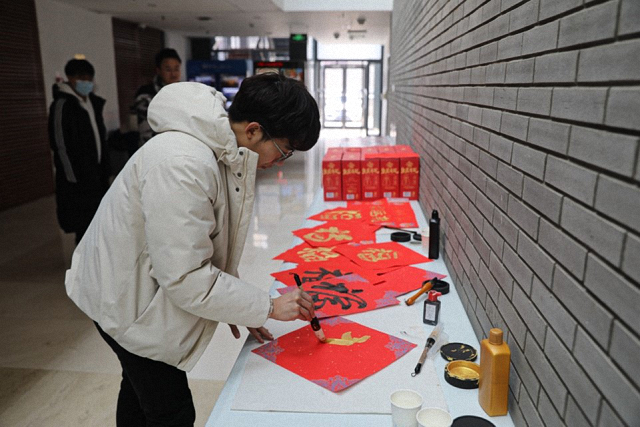 The venue was thoughtfully arranged with traditional cultural activities such as writing Spring Festival couplets and “Fu” characters. Chinese students introduced international classmates to Spring Festival traditions, and together they created couplets, wrote “Fu” characters, and exchanged New Year’s wishes. International students from seven different countries participated in the event. Many shared that it was their first time experiencing the Spring Festival in such an authentic setting since coming to China, making it an unforgettable memory.