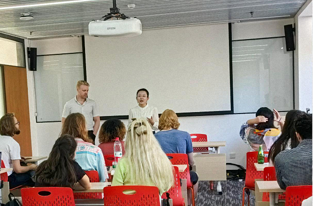 On the afternoon of Friday, September 22, 2023, an exchange event for international program students was held in Room C201 of the School of International Studies. With the theme of “career and life opportunities in China,” the event aimed to help students of the dual-master’s program better understand job prospects, gain insights into workplace experiences, and learn practical job-hunting skills through alumni sharing. The session was hosted by Ms. Xu Qinyi, Director of the PKU–Sciences Po Dual Master’s Program, and featured Mr. Mathias Larsen, a 2017 graduate of the program, as the keynote speaker. He shared with more than 30 international students his learning experience at PKU and his professional journey of working and living in China.