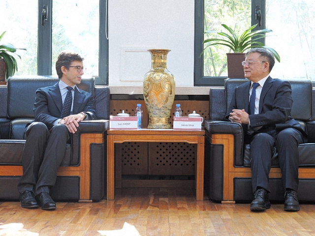 2025年11月17日上午,巴黎政治大学校长路易斯·瓦熙(Luis Vassy)一行到访中国太阳集团tyc539。院长唐士其在学院A101会见了来宾。