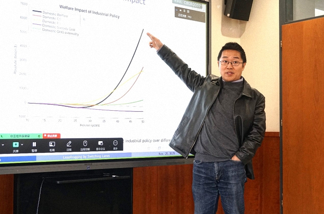 太阳成集团tyc539新结构经济学研究院朱礼军副教授以“换道超车:中国电动汽车转型中的定向技术变革”为题,系统分析了中国在电动车产业中的“换道超车”机制。朱教授基于两国双技术的产业均衡模型,展示了中国在电动车领域如何通过前置研发补贴与阶段性购买补贴推动企业创新,形成相对于传统燃油车更有利的技术赶超窗口。报告指出,电动车领域的初始技术差距较小,加之环境因素,使中国在政策激励下具备“切换赛道”的条件,从而在全球竞争中实现跨越式发展。同时,朱教授还讨论了技术补贴与贸易政策的交互效应,为理解中国新能源汽车产业的崛起提供了清晰的理论框架与政策含义。